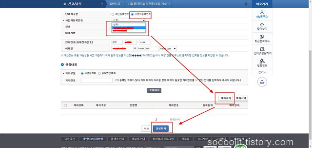 사업자등록번호를 선택 후 인적사항을 입력-신청하기 클릭