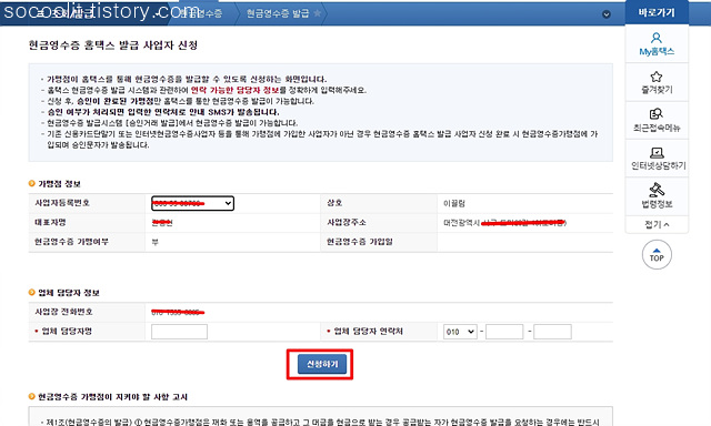 현금영수증 발급 사업자 신청 클릭