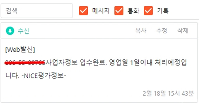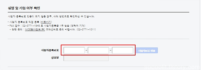 간혹 사업자등록 인증되지 않는 경우가 있는데 이땐, 위쪽 NICE평가정보(주)고객센터로 사업자등록증을 발송하면 된다.
