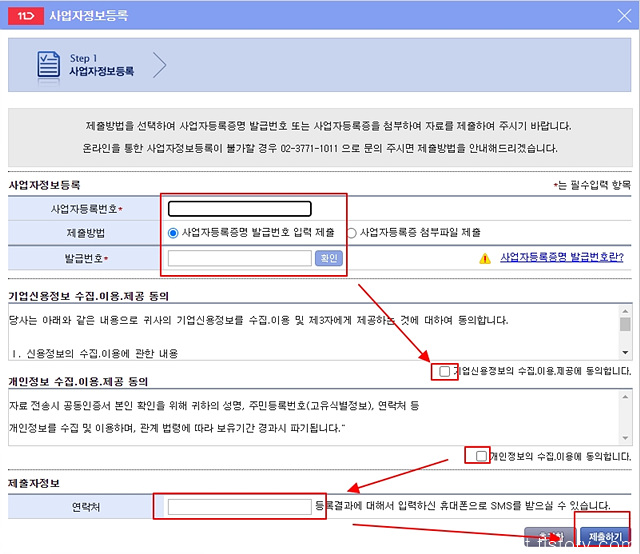 사업자등록 정보를 입력 후 제출하기
