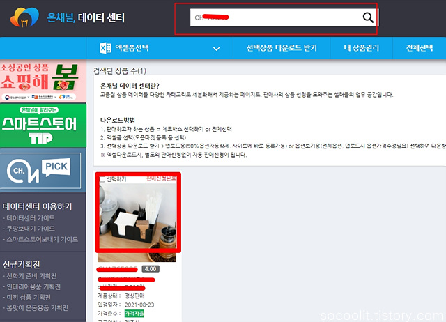 온채널 데티 터 센 터 검색 창에 오픈마켓에서 들어온 고객 주문 상품을 검색한다.