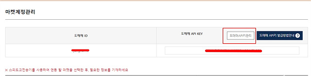 1. 스피드고전성기→마켓계정관리→도매매API키관리→추가발급