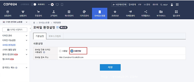 2. 카페 24 대표 모바일 디자인 변경 방법