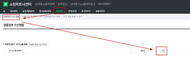 네이버 쇼핑파트너센터에 카페 24에서 복사한 상품DBURL을 요청해야 한다.