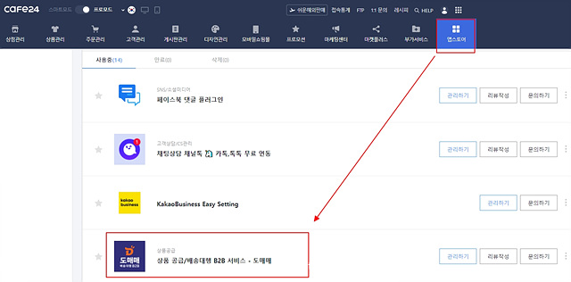 1. 카페 24 관리자 로그인 프로모드→ 앱스토어→ 도매매 앱 클릭