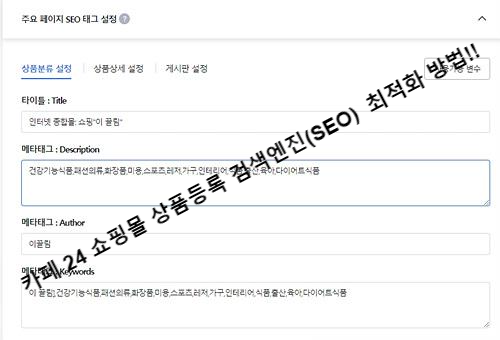 카페 24 쇼핑몰 상품등록 검색엔진(SEO) 최적화 방법!!